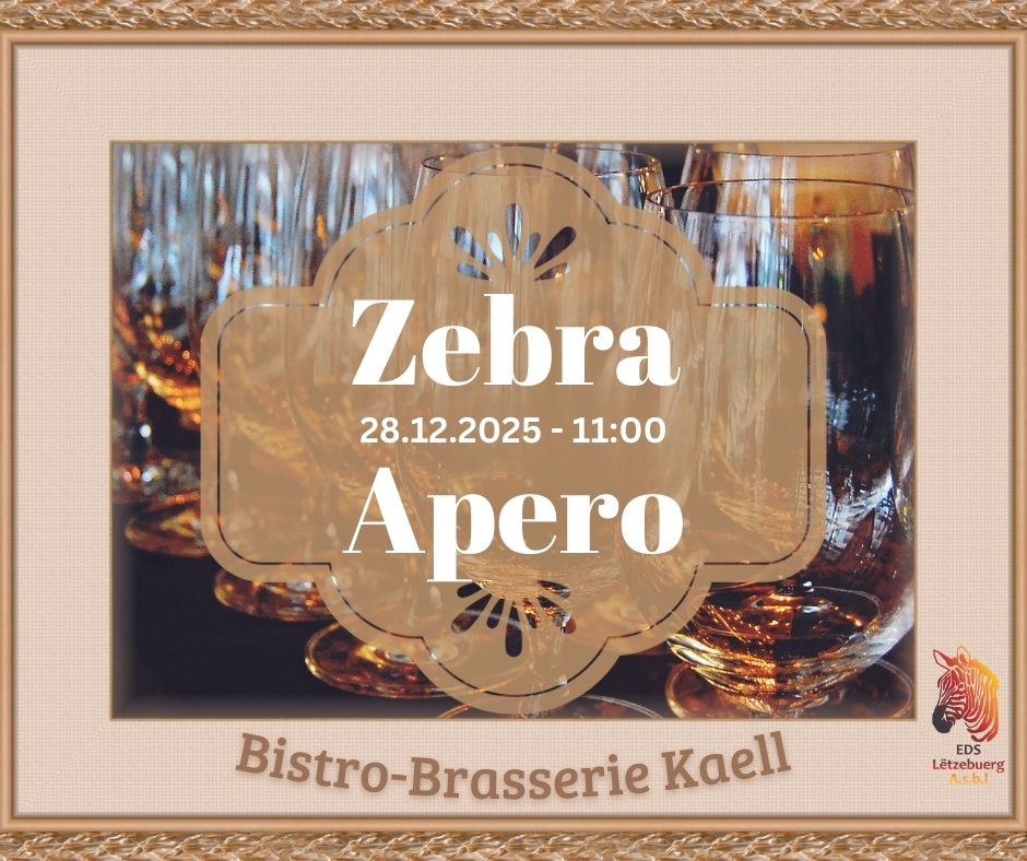 Säit 2025 hu mer all zweete Mount den Zebra Apero, de leschte Sonnde vum Mount ëmmer um 11:00. Meeschtens iesse mer och dono zesummen.Umeldung